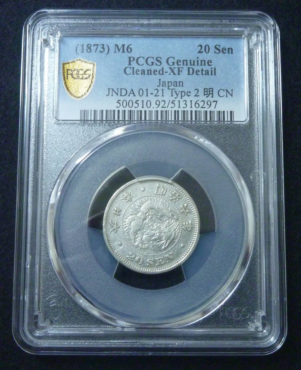 - ☆★竜20銭銀貨 明治6年 欠日 PCGS XF-D★☆