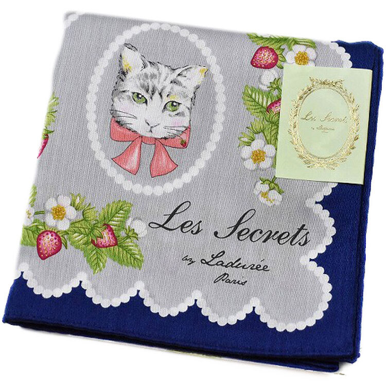 - ラデュレ ハンカチ 1枚 レディース ブランド グレー ネイビー ネコ 猫 いちご マカロン ハート 女性 婦人