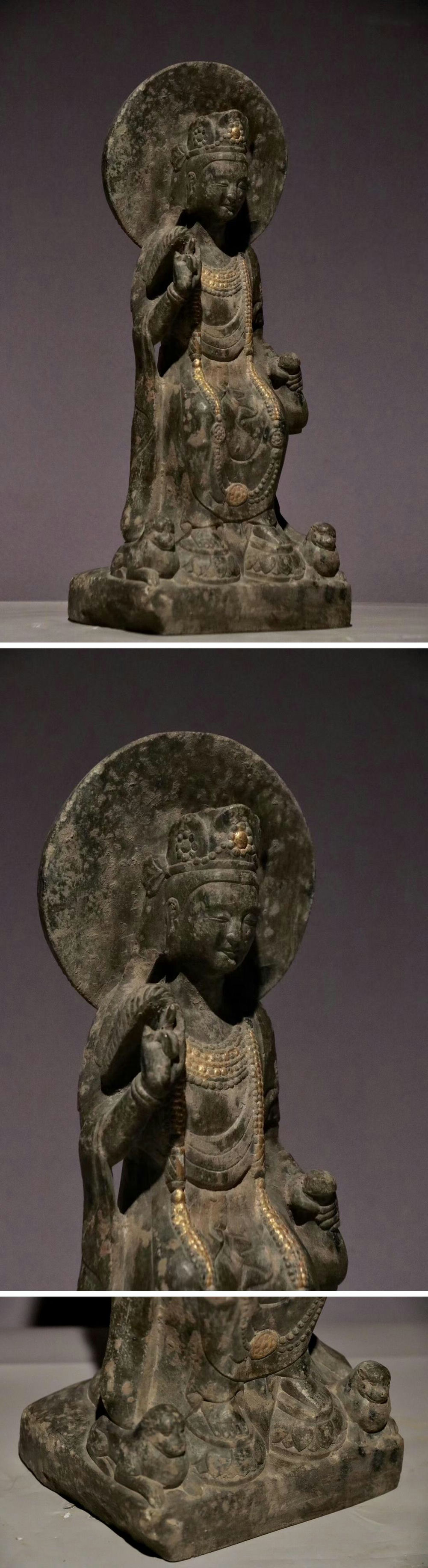 - ▼渡鶴羽▼R865隋代 豹斑玉塗金菩薩像 豹斑玉石細工彫刻★仏教古美術★仏像★細密細工★廃寺旧蔵★廃寺買出品