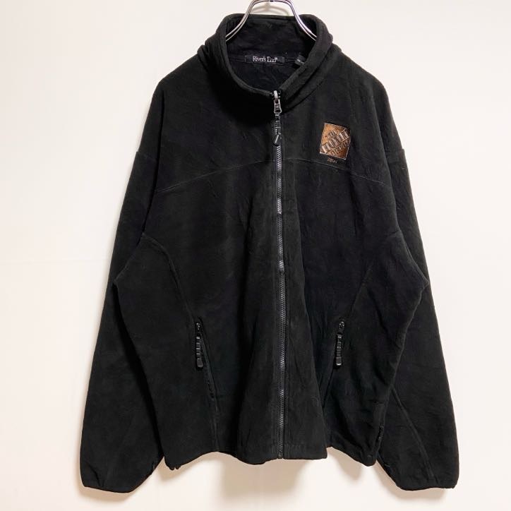 - 古着 used River'sEnd 長袖フリースジャケット ブルゾン ワンポイント刺繍 黒 ブラック 秋冬服 Lサイズ