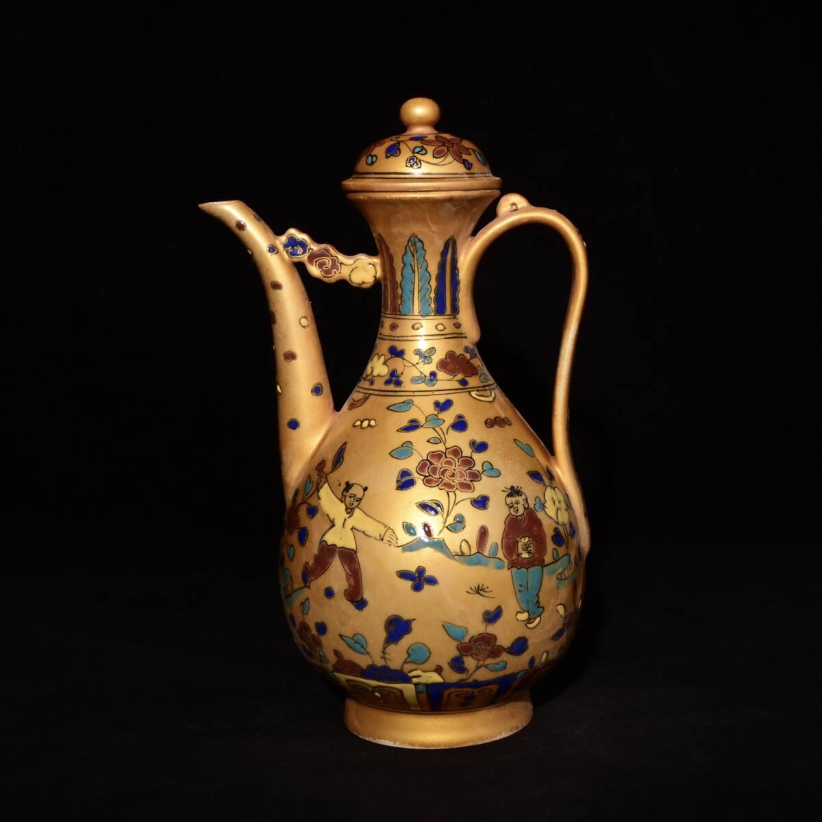 - TM8#6884【3.1】中国骨董 人間国宝 [ 大明成化年制金地五彩童子紋執壺] 銅器 金属工芸品 古玩收藏 復古 置物 純銅鋳造 開運風水