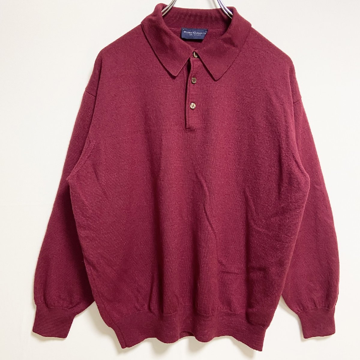 - 古着 used SAMCAVATO 長袖無地ポロニット セーター ノームコア シンプル ワインレッド 秋冬服 レトロ