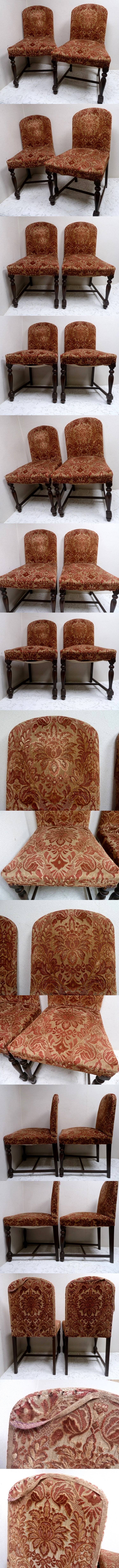 - (☆BM)アンティーク 古い 椅子 2脚 ベロア ヴィンテージ調 木製フレーム 西洋レトロ チェア 布張り ジャガード風 家具