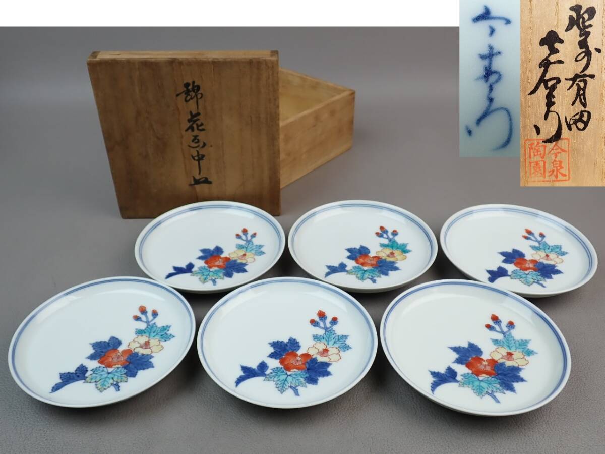 - 【骨董・茶道具】★鍋島焼 今泉今右衛門★★色鍋島錦花画中皿 6客 gn013ub21 和食器