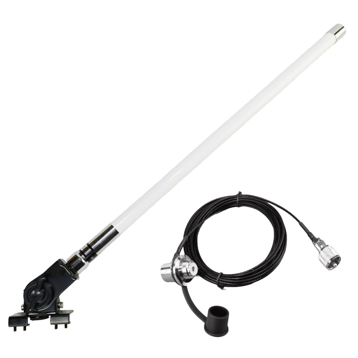- 送料無料s 55cm デュアルバンドアンテナ(白) +2軸可動式ハッチバック/トランクアンテナ基台 RG316(1.5D-2V相当)同軸ケーブル5m MJL-MP接栓