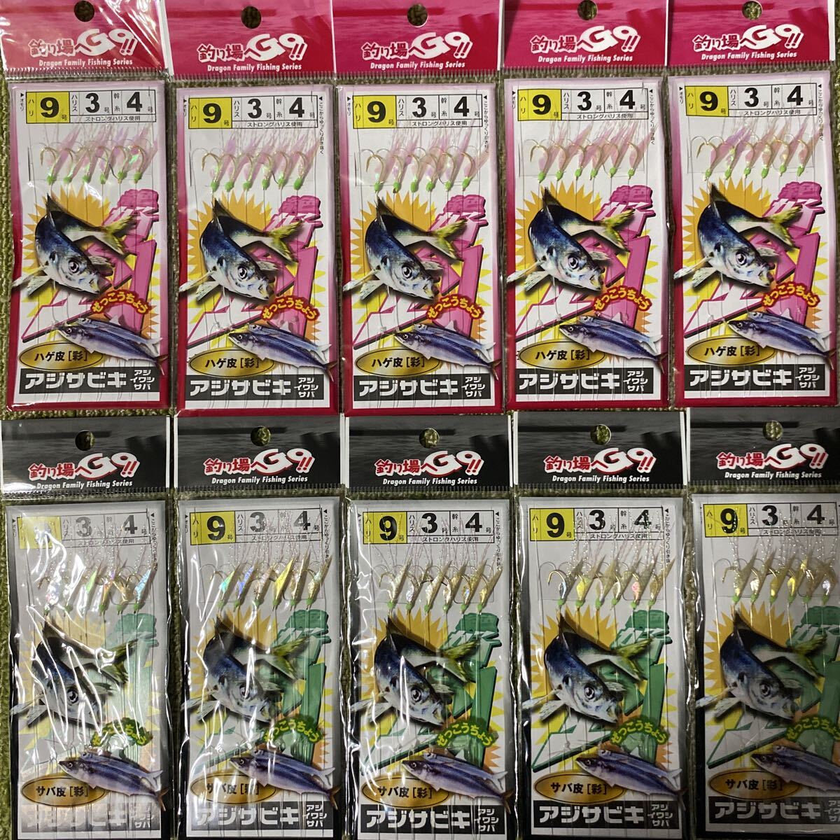 > アジ サビキ 9号 6本針 サバ皮[彩]&ハゲ皮[彩] 計10袋セット 仕掛け 小アジ・小サバ・小イワシ等堤防釣りに!106