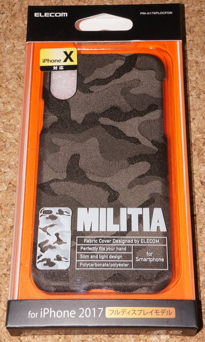 > ★新品★ELECOM iPhone X/XS オープン ファブリックカバー MILITIA カモフラージュ グリーン