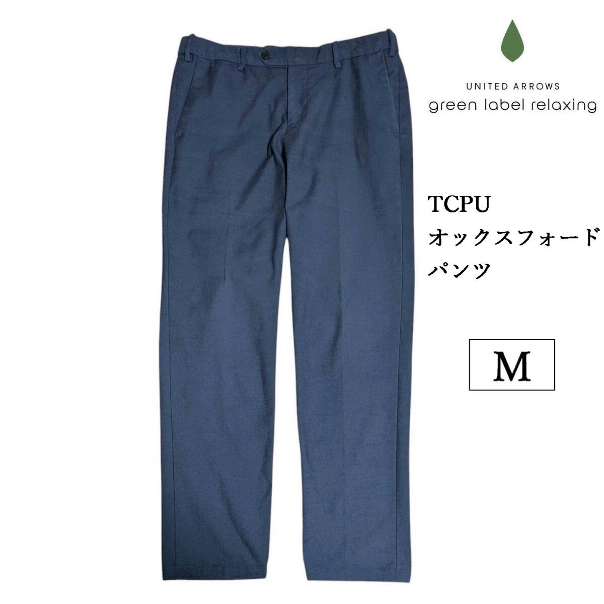 > green label relaxing TCPU オックスフォード スリム ノープリーツ スラックス スリムパンツ M ネイビー ブルー トラウザーズ