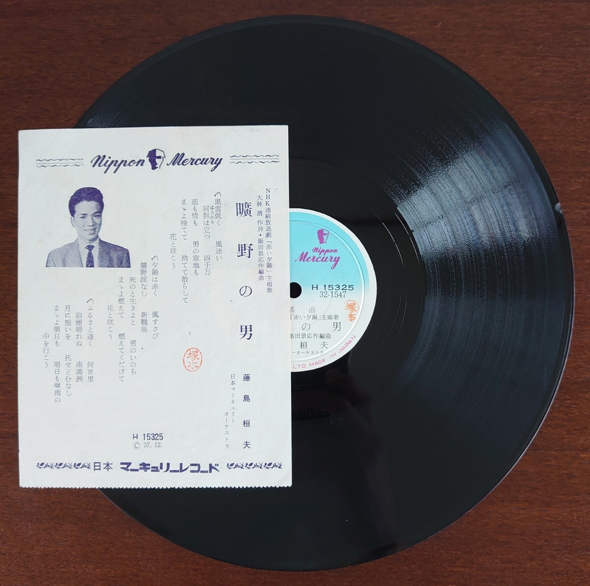> SP盤レコード/歌詞カード付/縁小欠/美盤】nippon Mercury H15325/NHK連続放送劇「赤い夕陽」主題歌/曠野の男 藤島桓夫/乙女の恋 直木みち子