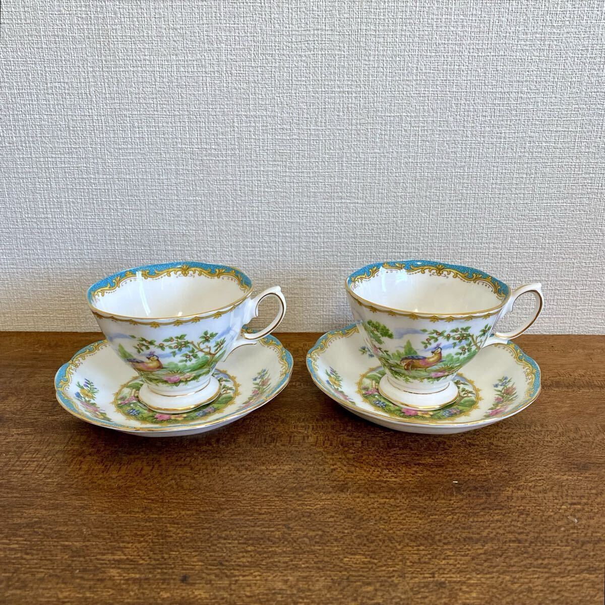 > ロイヤルアルバート チェルシーバード カップ&ソーサー 2客セット / ROYAL ALBERT イギリス 英国 洋食器 ペア 金彩 廃盤 / A