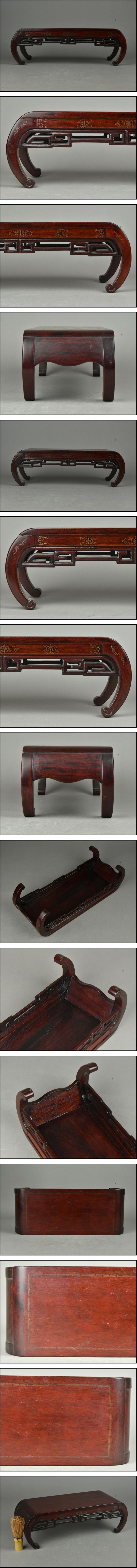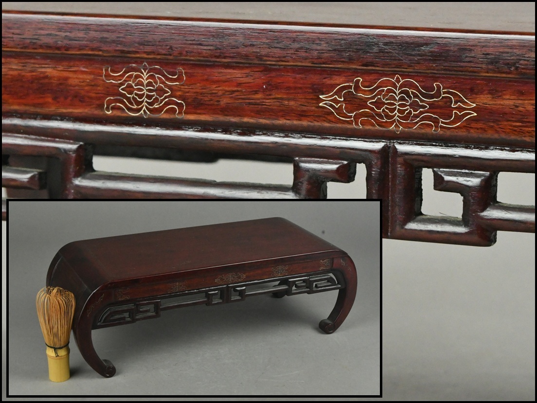 - 【ACT】中国美術 唐木造 花梨 紫檀 象嵌 透彫 平卓 花台 飾台 盆栽台 香炉台 古美術品 幅37.8cm A7-807-55