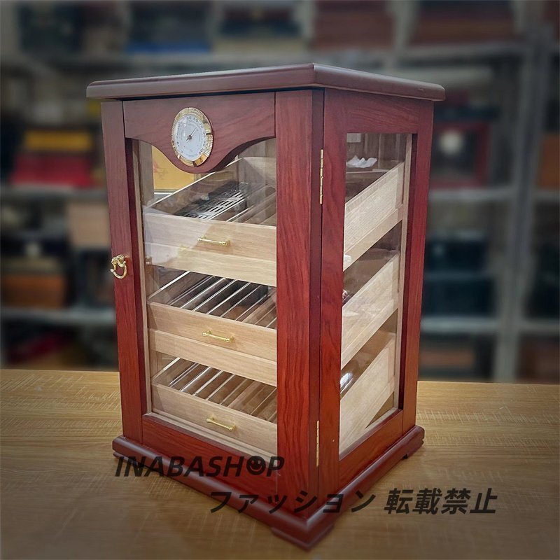 - 葉巻ボックス 手作り 大容量 葉巻ケース 高光沢 杉木材 シガー 湿度計 加湿器 喫煙具 保湿 木製シガレット 収納ケース たばこ保管