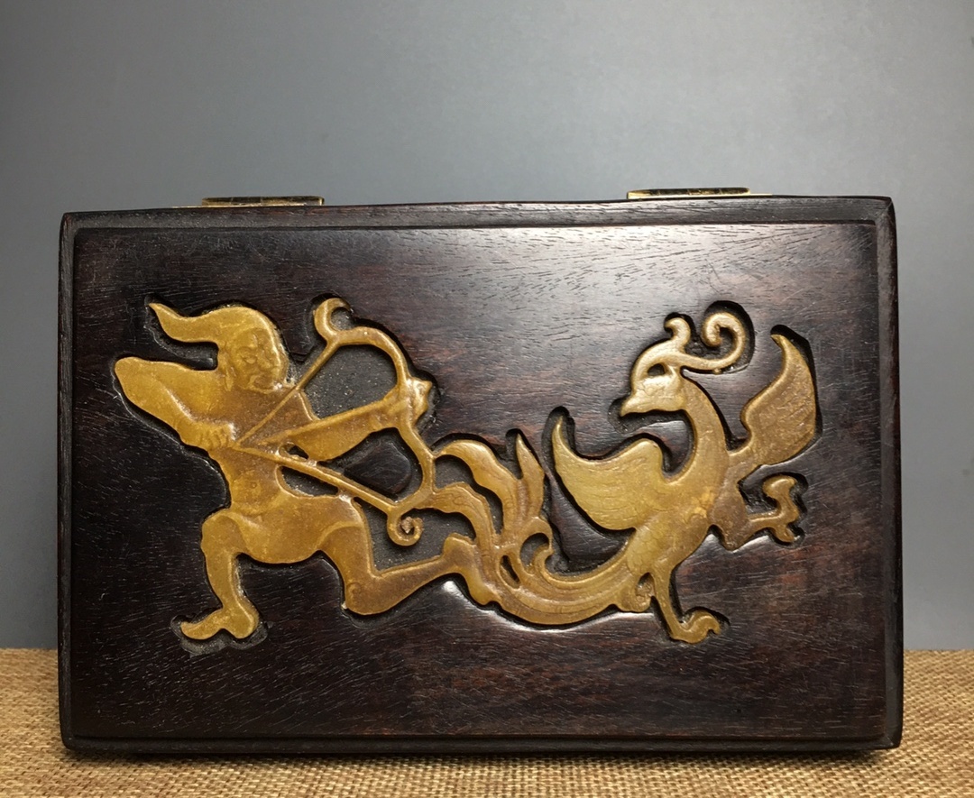 - 秘蔵 古木彫り 白檀に 寿山石を入れた箱 清代 書道具 文房具 時代物 中国古美術 細密彫 置物 賞物 唐物 木彫り 文玩 8.16