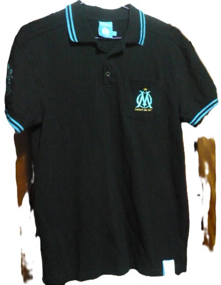 > チームオフィシャル?製オリンピック・マルセイユ半袖ポロシャツ M 黒×ネイビー×白×水色