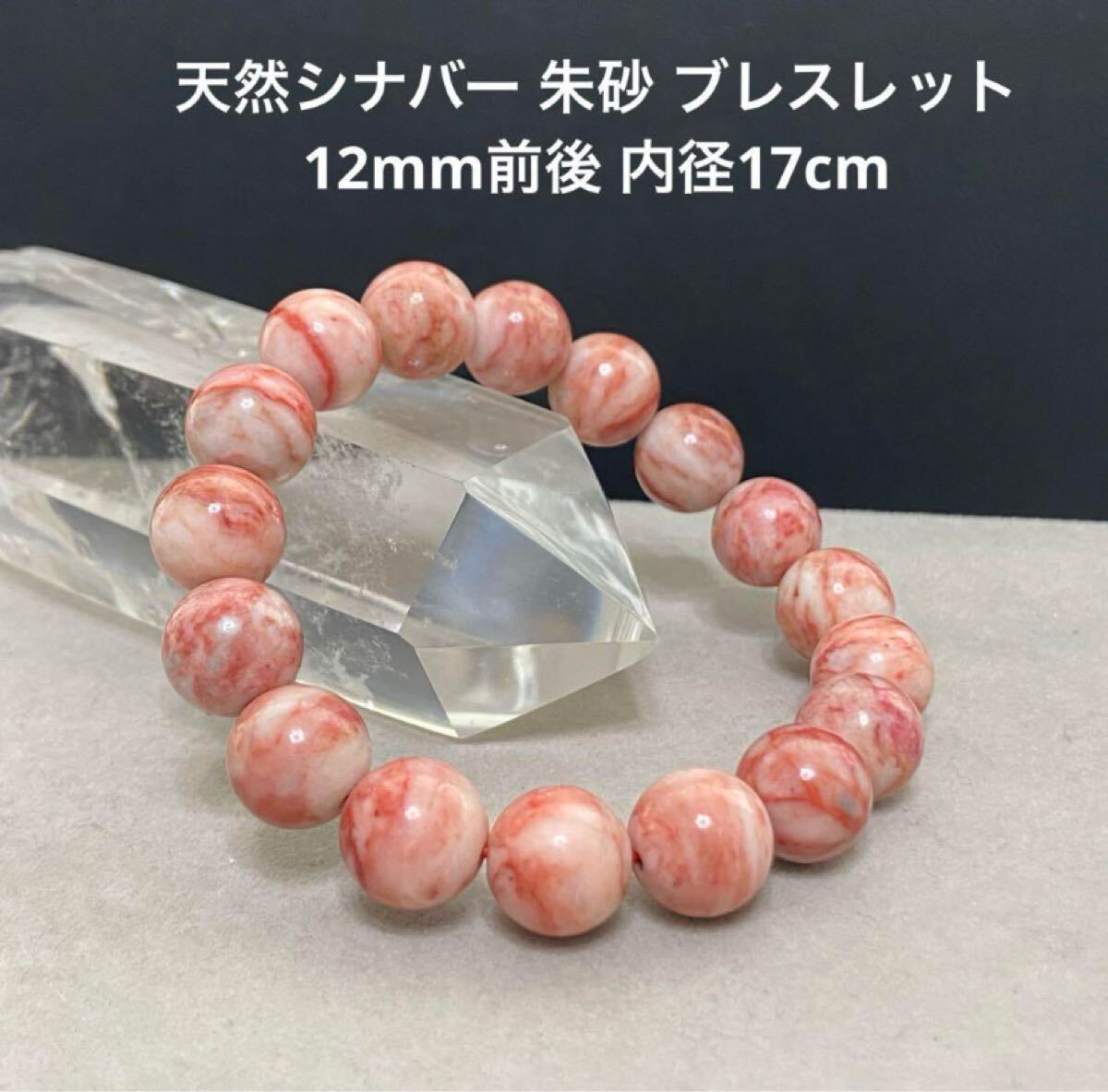 - D853 天然シナバー 朱砂 ブレスレット 12mm前後 内径17cm