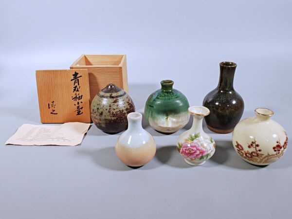 - 一輪挿し まとめて 6点 セット 銘あり 加藤清之 日展作家 九谷焼 西峰 米 花瓶 陶器 花器 華道具 茶道具 色絵 置物 貫入 骨董