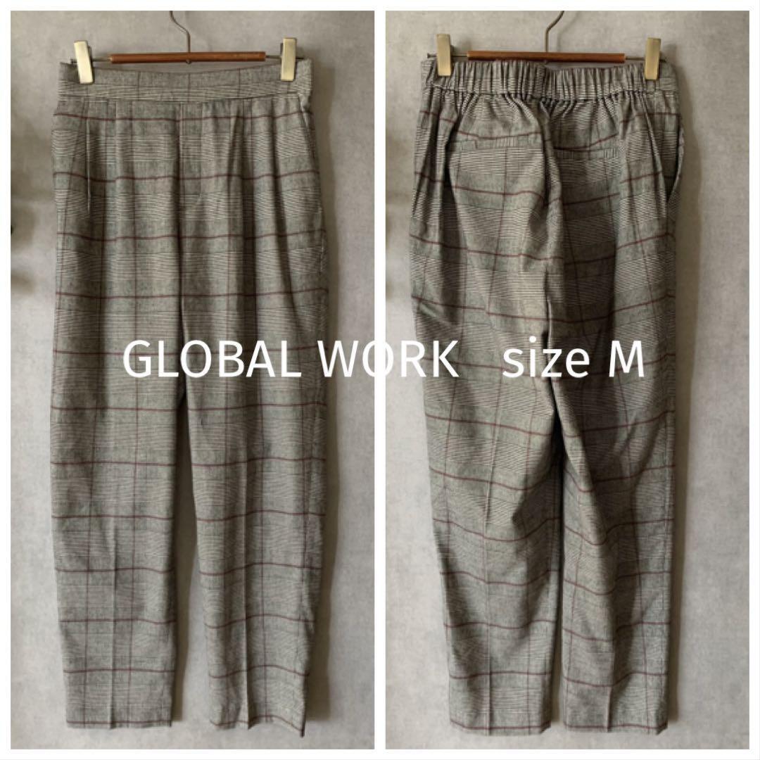 - GLOBAL WORK グレーグレンチェック クロップド丈パンツ 秋冬