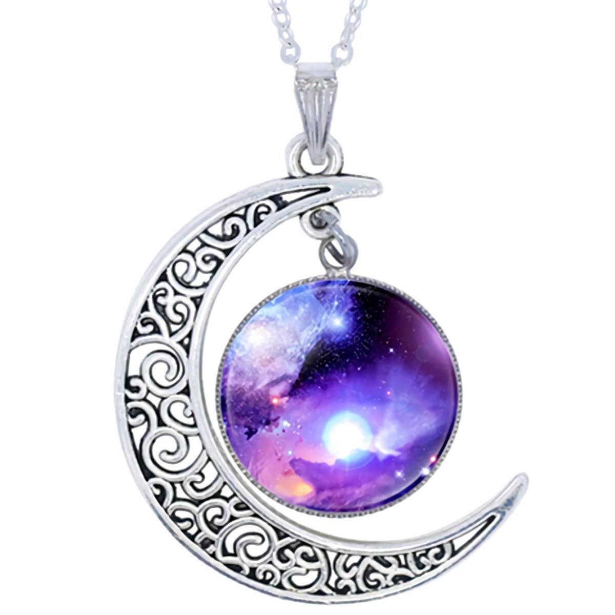 > 新品★送料無料★宇宙の銀河 フレア青紫ギャラクシー月彫プラチナ仕上925シルバーネックレス 誕生日プレゼント旅行夏海ギフト国内発送