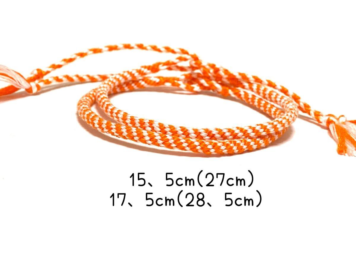 - ハンドメイド★ミサンガ オレンジ 白 ななめ 2本セット ペア(010)