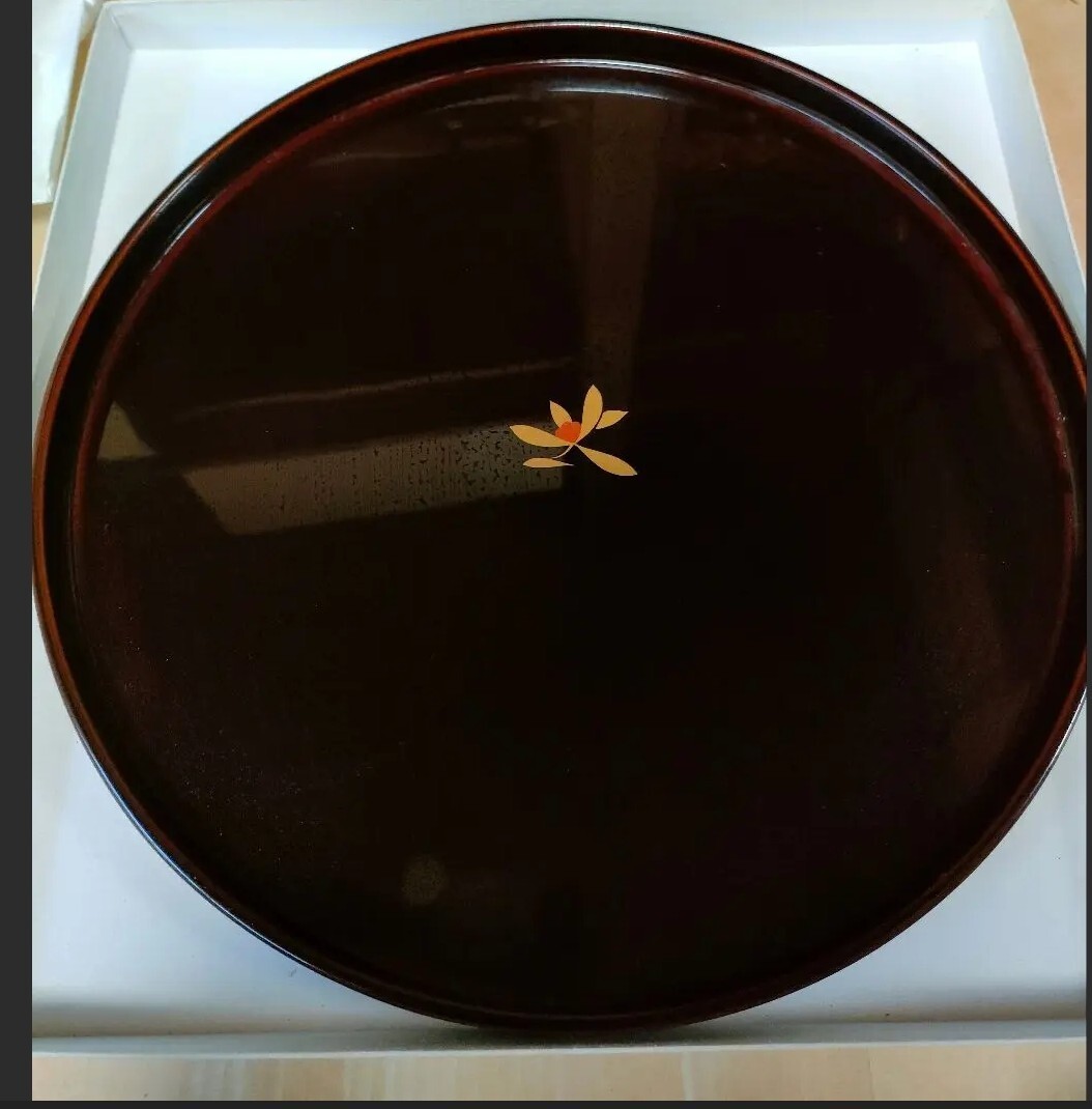 - ●美品 越前漆器 溜丸盆(ためまるぼん) 蘭(らん) 丸盆 漆器 天然木 木製漆器 お盆