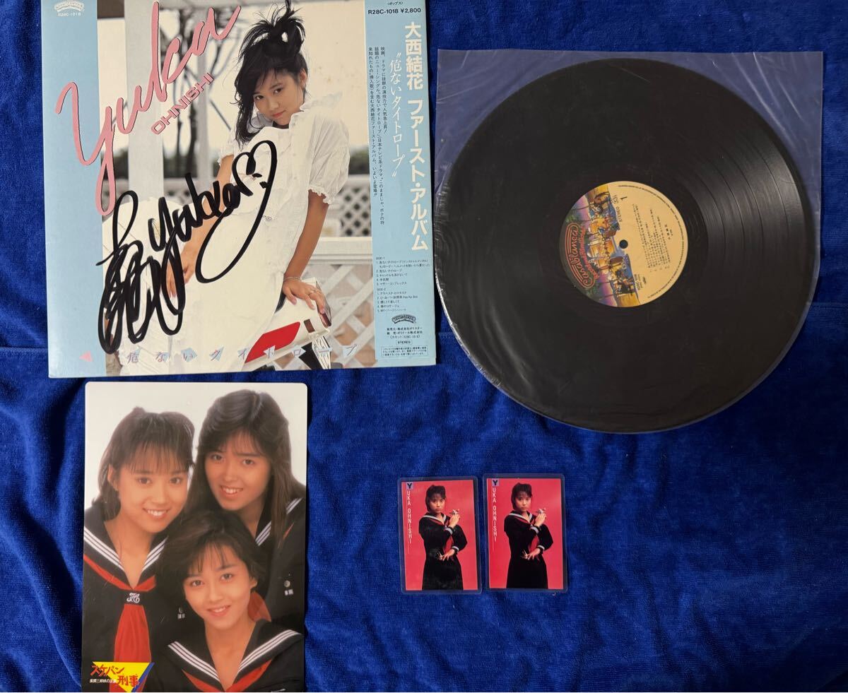 > 【レア】LPレコード『ファーストアルバム/大西結花』直筆サイン&下敷き ラミネートカード2枚 80年代女性アイドル タレント スケバン刑事