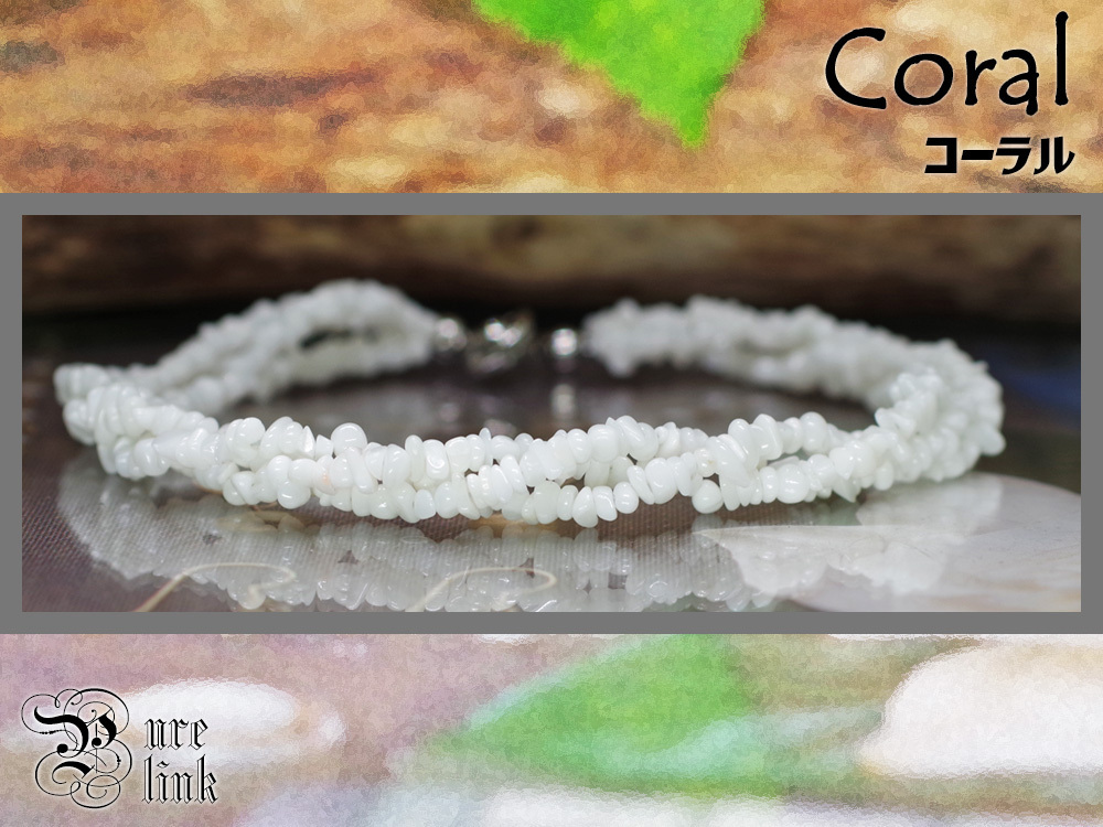 - 希少★極楽浄土を飾る七宝・『白珊瑚・ホワイトコーラル』3連ブレスレット