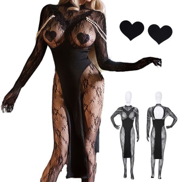- 【送料無料】 セクシー ランジェリー コスプレ チャイナ 女王様 シースルー 黒 ボディストッキング 胸開き メッシュ 全身タイツ 過激 変態