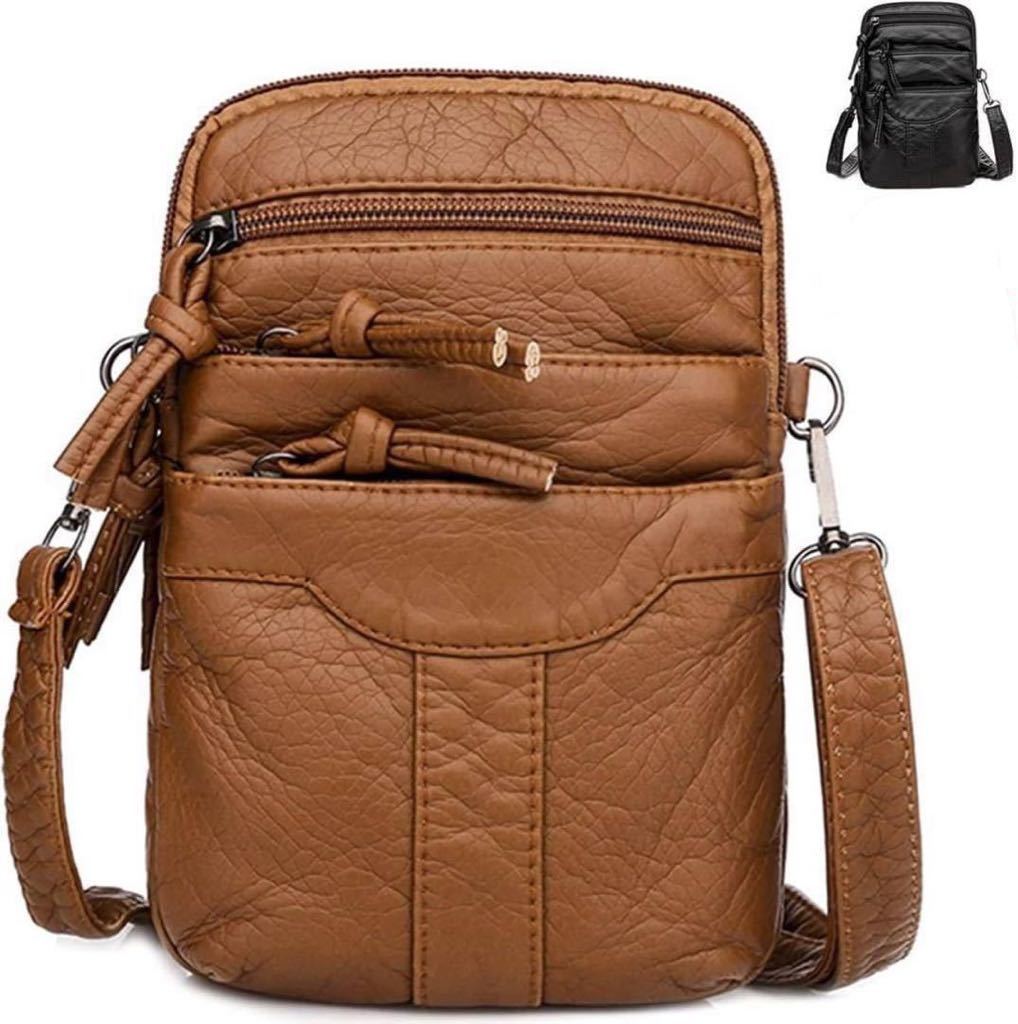 - スマホポーチ ショルダーバッグ 男女兼用 携帯ポーチ スマホポシェット 斜めがけ ブラウン