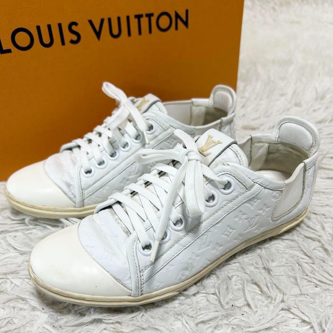 > 1円●LOUIS VUITTON●ルイヴィトン●22.5cm スニーカー ルクセンブルグライン モノグラム シューズ 靴 34.5 ホワイト 白 レディース
