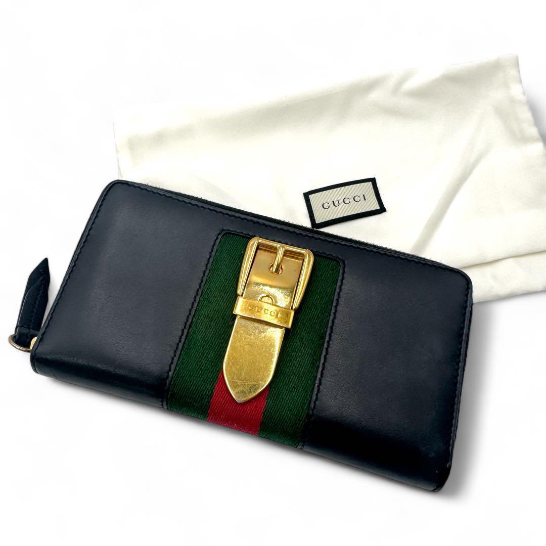 - GUCCI グッチ 長財布 ロングウォレット シルヴィ ラウンドジップ シェリー ブラック