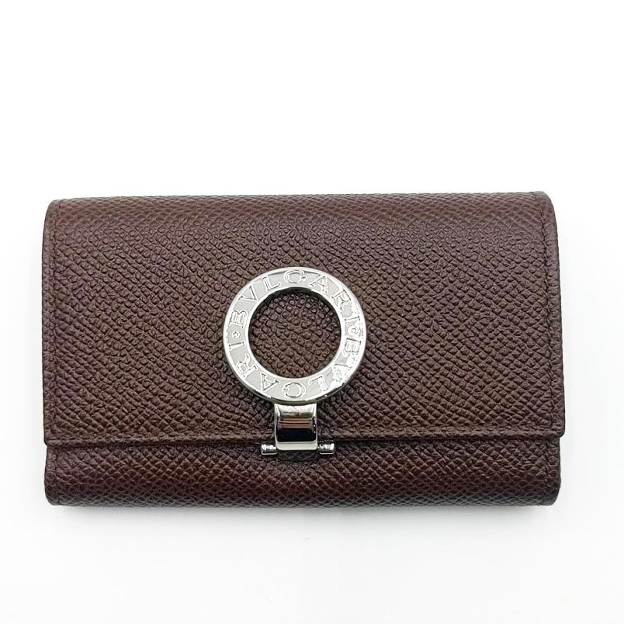 - 送料無料 超美品 ブルガリ BVLGARI 6連キーケース レザー 三つ折り リングクリップ イタリア製 茶 ブラウン系 メンズ