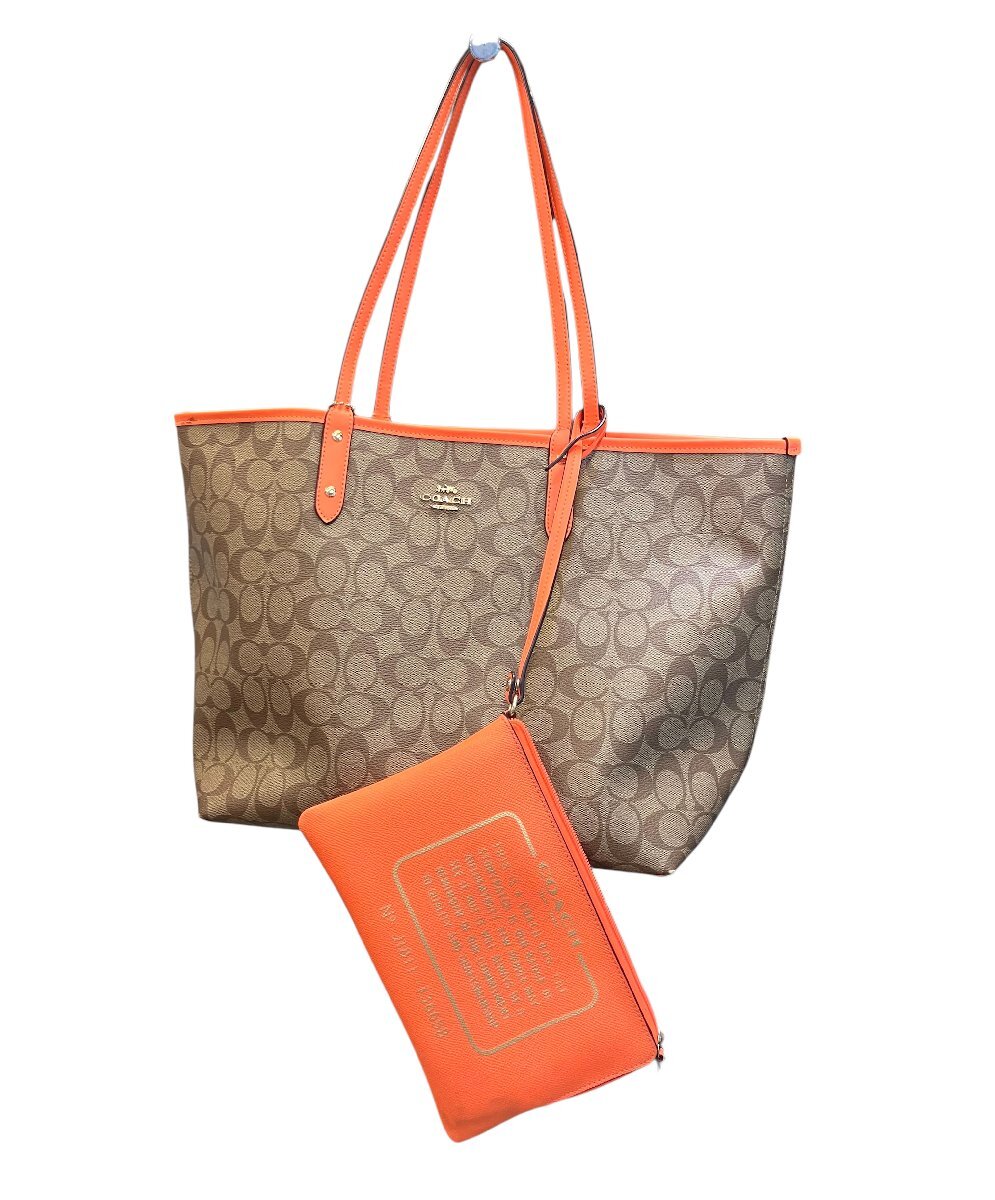 - qob.ZEK05 COACH コーチ シグネチャー PVCレザー リバーシブル トートバッグ ポーチ付き J1811-F36658