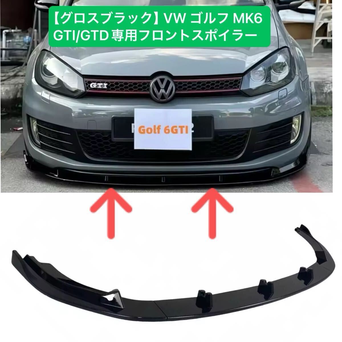 > ▼グロスブラック▼VW ゴルフ MK6 GTI/GTD 専用 フロントバンパーリップスポイラー スプリッター ボディキット [2008-2012]カスタム エアロ