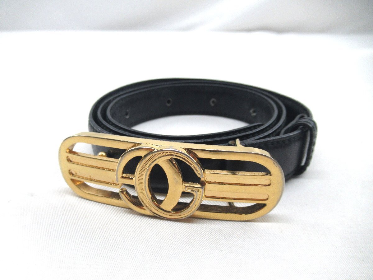 > ★【B送900円】2237 GUCCI グッチ レザーベルト ブラック ロゴバックル GG ゴールド金具 イタリア製 全長約86.0㎝