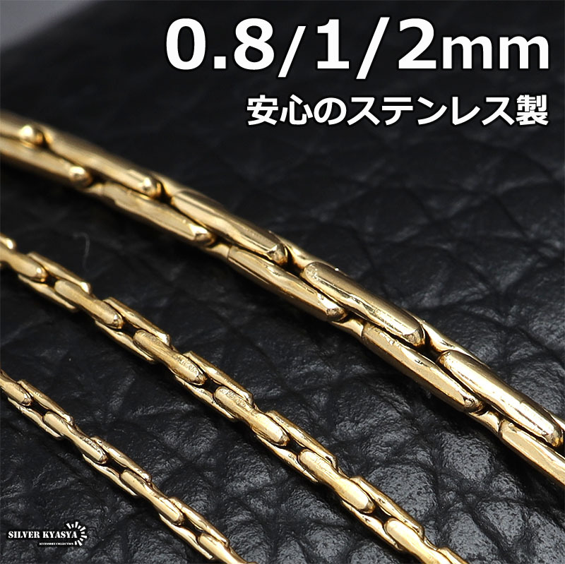 - (0.8mm、50cm) ゴールド 細身ネックレスチェーン 金 クロスハンマーチェーン 細めなのに重量感あり