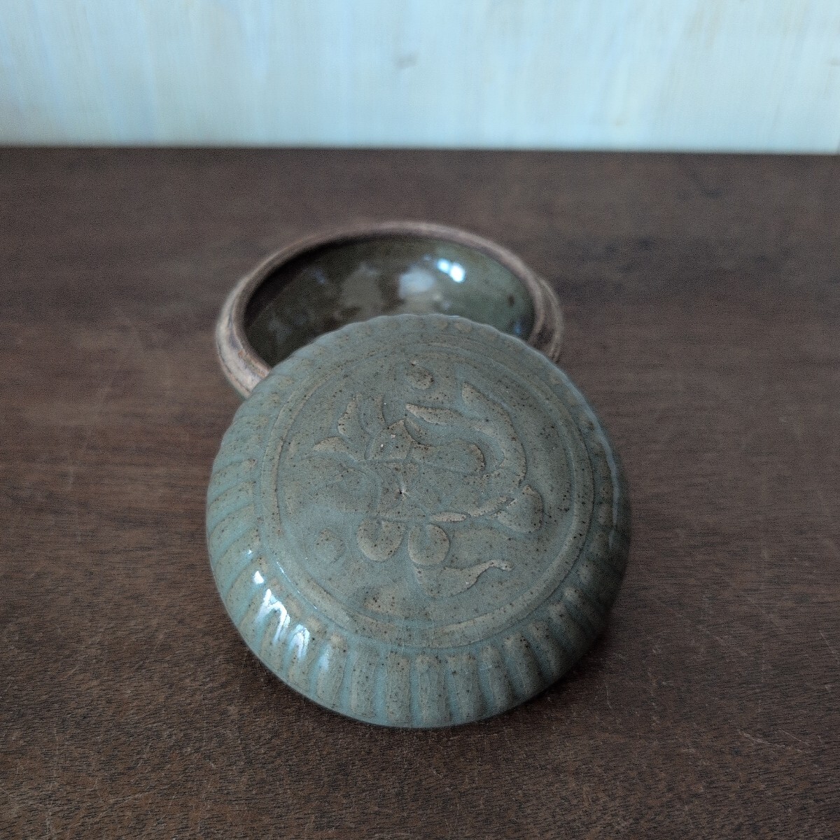 - 魚文 青磁 香合 合子 時代物 李朝 中国 古玩