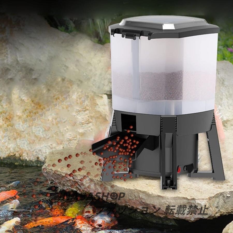 - 魚自動給餌器 ソーラー 自動給餌器 魚 屋内屋外魚のいる池用 6L大容量 120°分散給餌設計 湿気防止 定時餌をやる 餌やり器 オートフィーダ