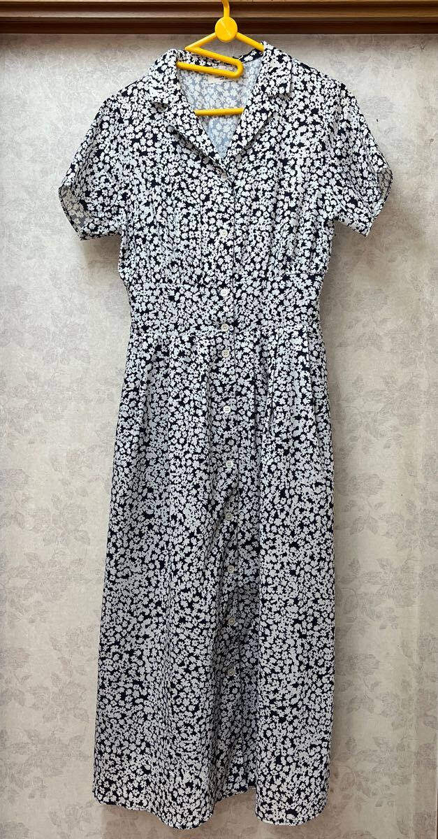 > ★FREAK'S STORE★フリークスストア ワンピース 半袖 総柄 F 小花柄 紺ネイビー白ホワイト ウエストゴム 裏地付き ポリエステル100%