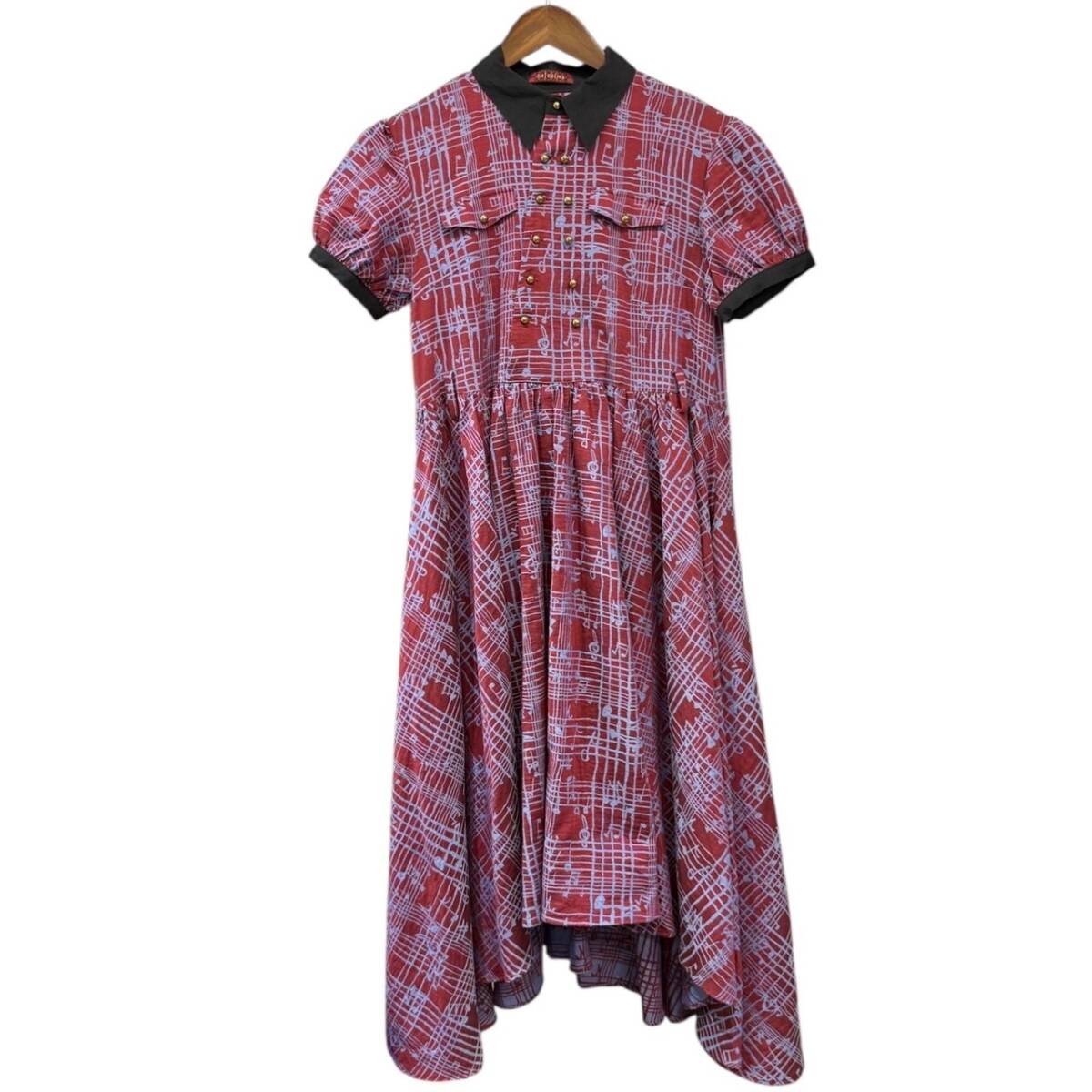 - ha za ma ハザマ 2021PC 狂気を帯びて交わる五線のチェックワンピース S レッド 14721