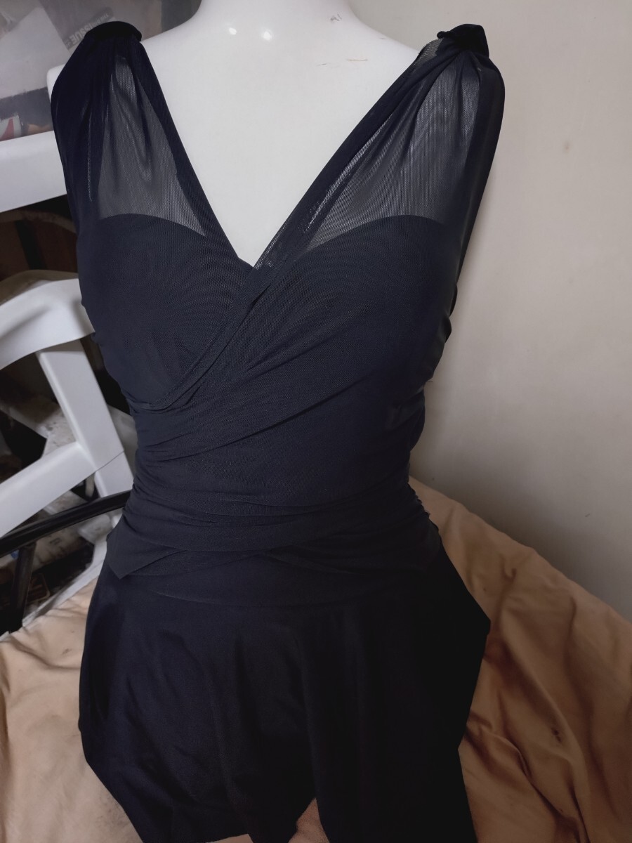 - M4432◆スカート・パンツタイプ◆セレブなブラック系ワンピース水着◆9М