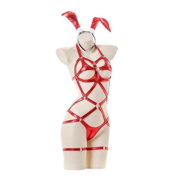 - 新入荷 超セクシー 悩殺 ハーネスタイプ 【特殊形状レオタード 4点セット】ベビードール ナイトウェア エロ下着 コスプレ衣装 レッド