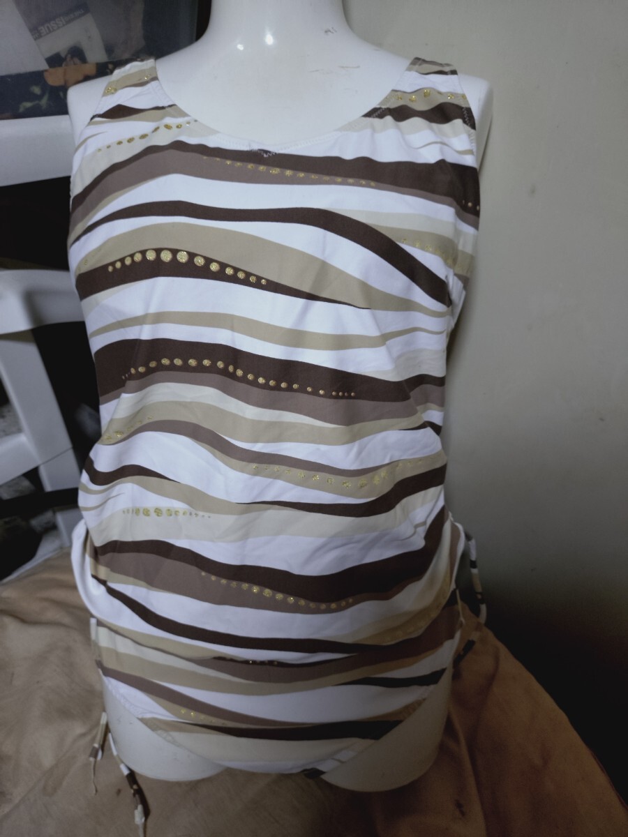 - M4453◆アルジャン◆セレブなブラウン系ストライプ柄ワンピース水着◆17LL◆超ビッグサイズ