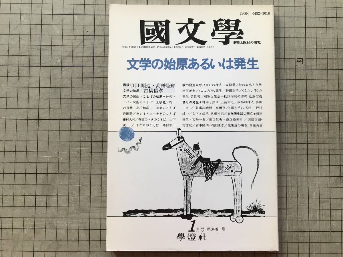 - 『国文学 解釈と教材の研究 第34巻1号 文学の始原あるいは発生』川田順造・高橋睦郎・小松和彦・古橋信孝 他 学燈社 1989年刊 11565