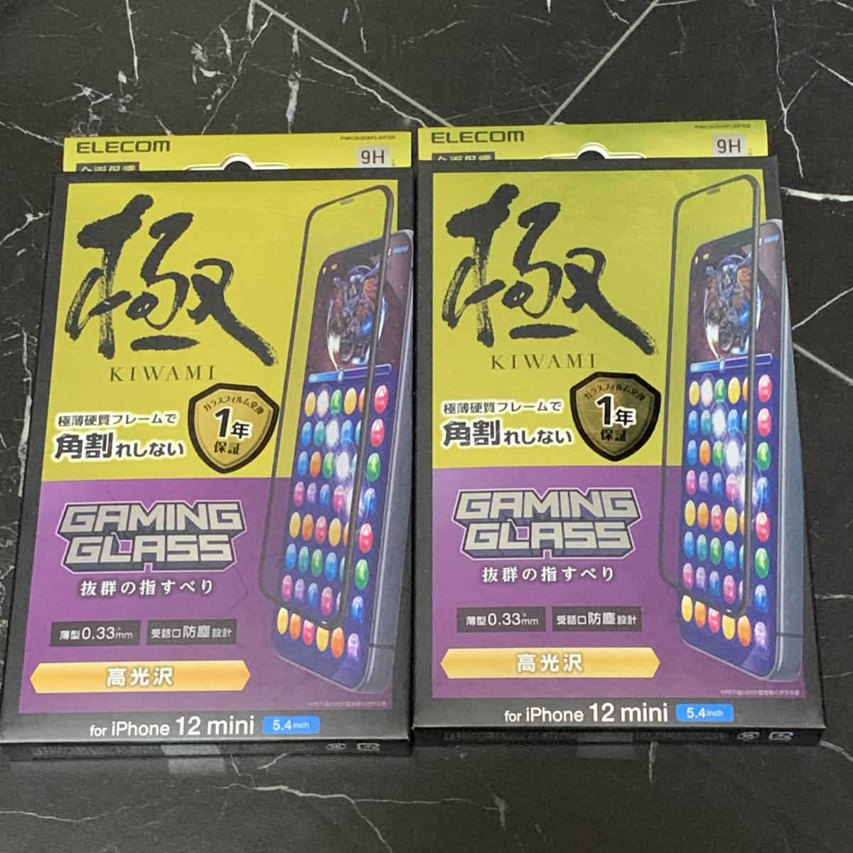 - 新品・送料無料■エレコム・ELECOM■iPhone 12 mini 極 全面保護 強化ガラスフィルム 9H ゲーム用 高光沢 極薄硬質フレーム■2個セット