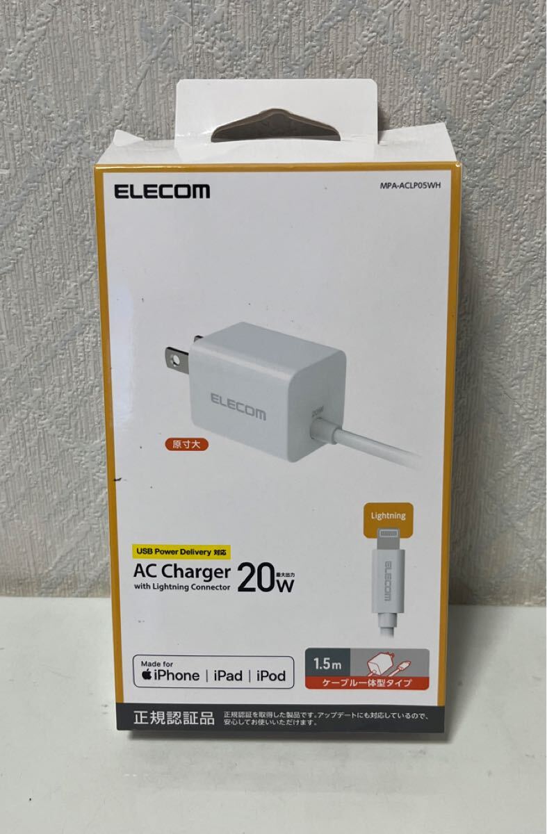 - 708i1818 エレコム iPhone 充電器 USB PD対応 20W ライトニングケーブル一体型 1.5m 小型 コンパクト 折りたたみ式プラグ