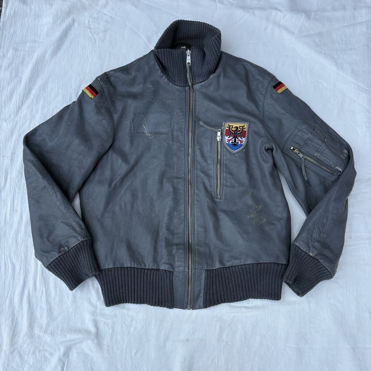 - 80s ドイツ軍 実物 パイロットレザー フライト ジャケット レザー Gr3 M相当 Y2K トラックジャケット ヴィンテージ ミリタリー ユーロ