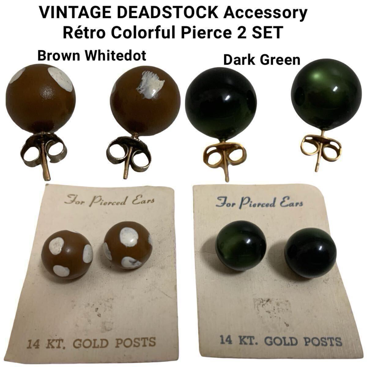 > VINTAGE ヴィンテージ デッドストック アクセサリー ヴィンテージ レトロ カラフル 球体 ピアス 2点セット グリーン系 ブラウン アーカイブ
