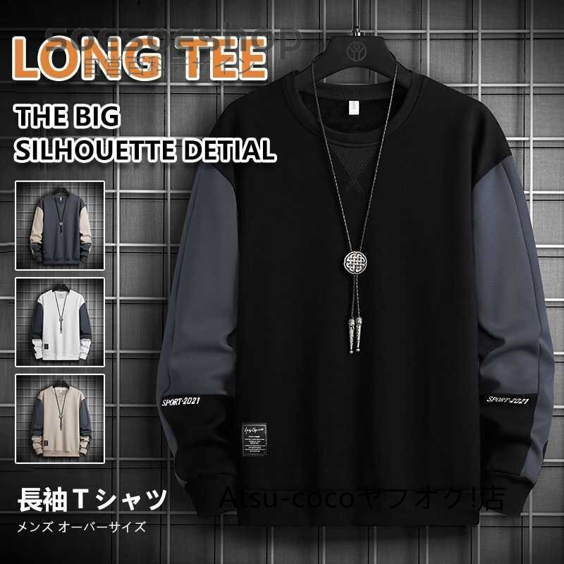 - メンズ tシャツ ロングtシャツ バイカラートレーニングウェア 長袖 ストリート ビッグシルエット カジュアル☆4色/M-5XLサイズ選択/1点