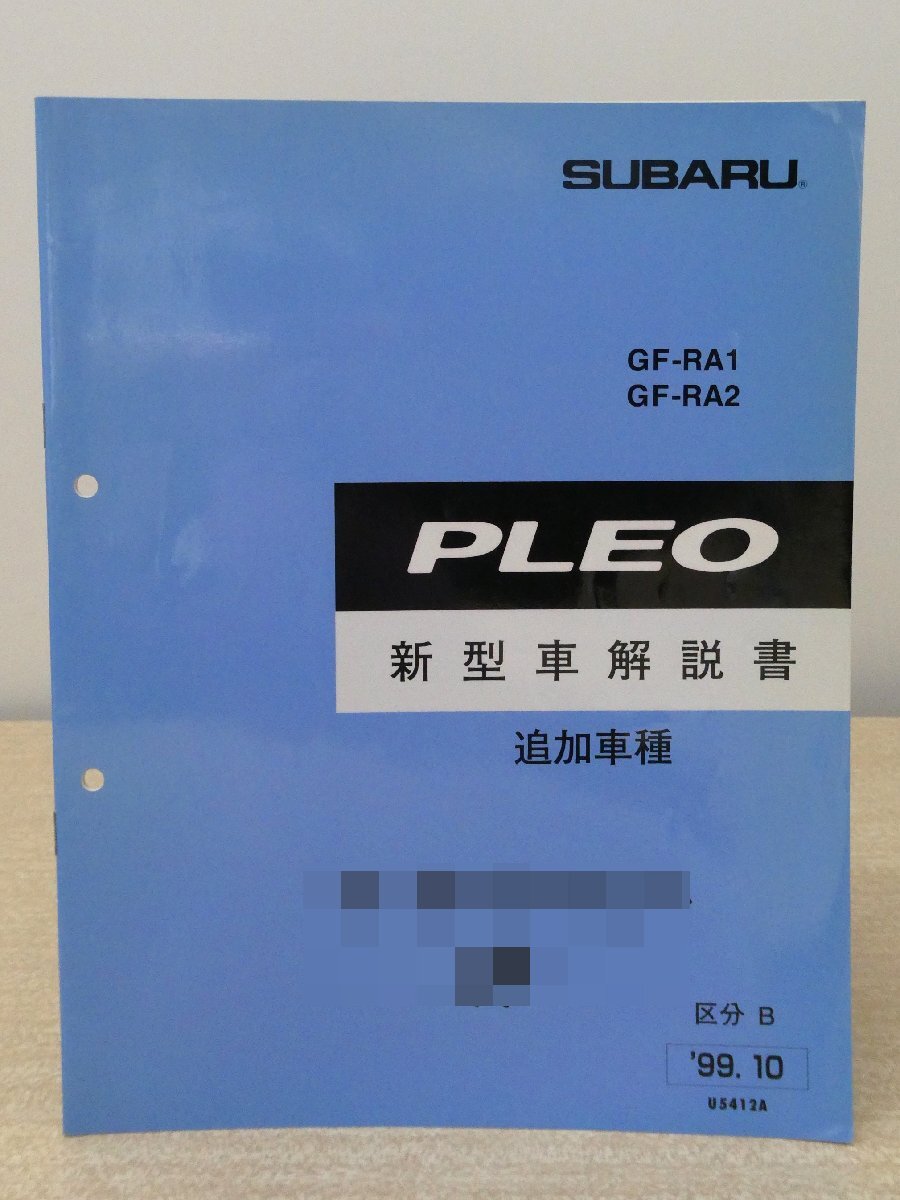 - [W5551] SUBARU PLEO 新型車解説書 追加車種 '99.10 区分B U5412A / スバルプレオ 中古整備書 富士重工業