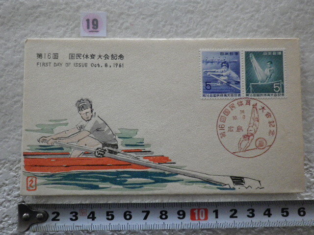 - FDC 第16回国体 1961年 2貼1消 広島局 説明書有 中村浪静堂●19●